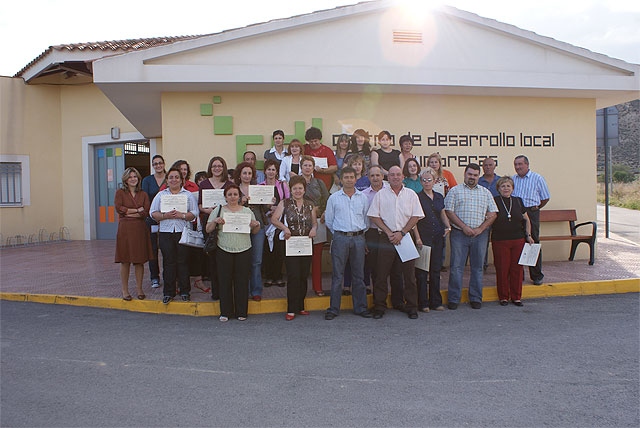 El concejal de Empresas, Empleo y Desarrollo Local, Ginés David Piñero junto al edil de Desarrollo Rural, José Mª Parra asistieron ayer al acto de entrega de diplomas a los alumnos de los nueve cursos subvencionados por el (SEF) Servicio Regional de Empleo y Formación, celebrados en el Centro de Desarrollo Local de Puerto Lumbreras.