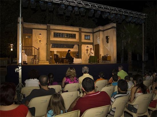 El Parque Municipal acogido la pasada noche la obra de teatro “Vade Retro” organizada por la Concejalía de Cultura y Festejos del Ayuntamiento de Puerto Lumbreras y la CAM interpretada por la compañía “Doble K Teatro”. La obra está creada por Fermín Cabal (que obtuvo el XV Premio Mayte de teatro, concedido todos los años a la personalidad teatral más destacada durante la temporada) y expone un conflicto generacional, que considera es uno de los principales problemas de la sociedad española actual, el recambio de una generación por otra en diversos campos sociales.