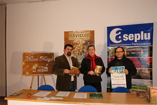 La concejal de Educación, Cultura y Festejos, Isabel García, junto al Concejal de Fomento y Empleo, Ginés David Piñero han presentado esta mañana la programación de navidad que desde el próximo jueves y hasta mediados de Enero se celebrará en Puerto Lumbreras. También ha asistido a esta presentación el Vicepresidente de la Asociación de Empresarios ASEPLU, Antonio García.