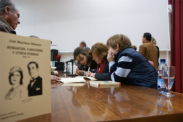 Un centenar de personas asistieron ayer a la presentación del libro de la escritora lumbrerense Marisol Romera dedicado al poeta lumbrerense, José Martínez Olivares, en el Centro Cultural del municipio que contó además con la presencia de las concejalas del Equipo de Gobierno, Isabel García y Dolores Arenas.