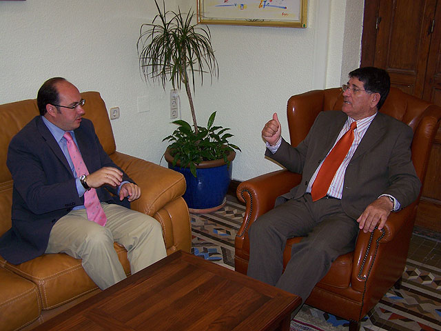 El alcalde de Puerto Lumbreras, Pedro Antonio Sánchez, y el alcalde de Águilas, Juan Ramírez, han mantenido esta mañana un encuentro institucional en el municipio de Águilas en el que han abordado temas relacionados con el agua, el ave o la inversión en infraestructuras viales.
