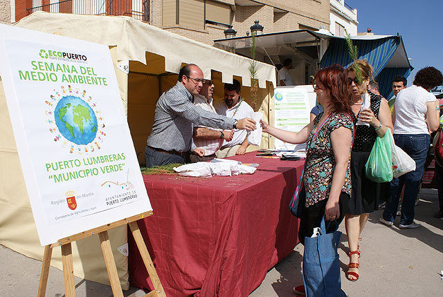 Con motivo de la celebración del Día del Medio Ambiente, el Ayuntamiento de Puerto Lumbreras ha puesto en marcha el programa ‘Semana de Medio Ambiente’, que este año cuenta con numerosas actividades que se engloban bajo el lema ‘Puerto Lumbreras, Municipio Verde’. Entre las iniciativas que se han organizado con motivo de este día destaca la instalación de una caseta informativa en el mercado semanal en la que se ha obsequiado a los visitantes con macetas que han representado el símbolo del Día Mundial del Medio Ambiente. El Alcalde de Puerto Lumbreras, Pedro Antonio Sánchez, junto a miembros del gobierno municipal, han colaborado en esta iniciativa en la que han participado más un medio millar de lumbrerenses.