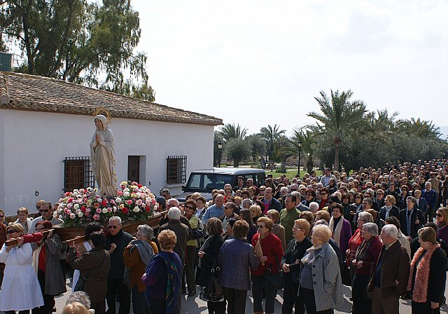 A continuación, se ha realizado una procesión de la imagen de la Virgen de Lourdes de la Iglesia Ntra. Sra. del Rosario de Puerto Lumbreras que ha llevado a la Virgen en un recorrido por el paraje natural que rodea a la Yeguada Peña de Béjar. Por último, se ha celebrado la Eucaristía en la que han estado presentes las 700 personas de la Hospitalidad de Lourdes, entre los que se agrupan enfermos, voluntarios, sacerdotes, sanitarios y peregrinos. Además, también han acudido niños de la casa cuna de Murcia que cada año realizan la peregrinación a Lourdes.