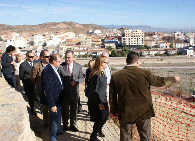 El Alcalde de Puerto Lumbreras, Pedro Antonio Sánchez, junto a la directora general de Turismo, Marina García Vidal, y el delegado del Gobierno, Rafael González Tovar, han visitado esta mañana las actuaciones que se están desarrollando en el entorno del Castillo de Nogalte.