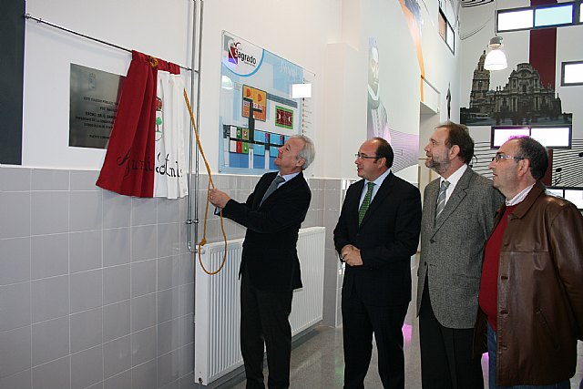Valcárcel, acompañado por el alcalde de Puerto Lumbreras, Pedro Antonio Sánchez, y el consejero de Educación, Formación y Empleo, Constantino Sotoca, visitó las nuevas instalaciones del centro, que se ubican en la calle Pablo Casal.