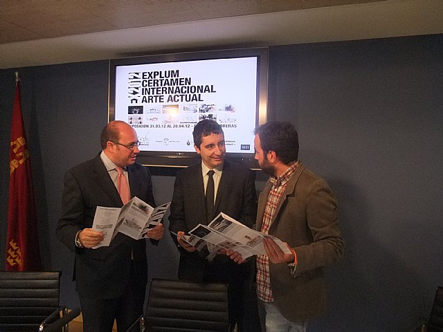 El consejero de Cultura y Turismo, Pedro Alberto Cruz, acompañado por el alcalde de Puerto Lumbreras, Pedro Antonio Sánchez, presentó hoy la novena edición del Certamen Internacional de Arte Actual 'Explum', que se celebra en la localidad del 31 de marzo al 20 de abril y exhibirá la obra de 12 artistas nacionales e internacionales.