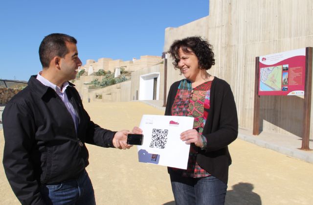 Viernes 20 de abril de 2012. El Ayuntamiento de Puerto Lumbreras pone en marcha un sistema de códigos QR para que los visitantes puedan acceder a través de sus teléfonos móviles a una información detallada de cada uno de los Punto de Interés Turístico del municipio. Así, esta mañana la concejala de Turismo y Cultura, Maribel Martínez, y el concejal de Nuevas Tecnologías, Jenaro Pérez, han presentado el proyecto "locuciones a través de códigos QR y soportes de 26 puntos de interés".