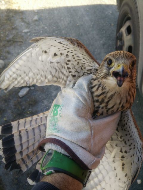 Dos agentes de la Policía Local de Puerto Lumbreras han rescatado, gracias a la colaboración ciudadana, un ejemplar de cernícalo común, que se encontraba herido y fue hallado en la diputación lumbrerense de El Descanso.