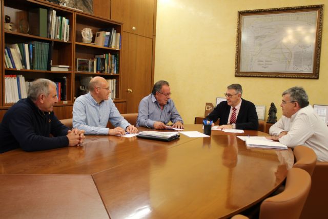 El presidente de la Confederación Hidrográfica del Segura (CHS), Mario Urrea, acompañado por el comisario de Aguas, Javier García, se ha reunido esta mañana con la comunidad de regantes de Puerto Lumbreras.