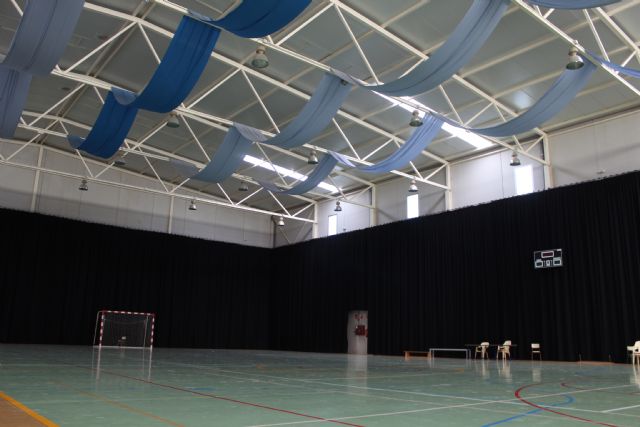 "En concreto, se han llevado a cabo cuatro actuaciones para mejorar la instalación. En primer lugar, se ha realizado la insonorización del pabellón, gracias a un telón de color negro en los laterales del pabellón con propiedades de buena absorción acústica. Un trabajo que responde a una necesidad de mejora acústica para los entrenamientos realizados en el centro y para las sesiones de Educación Física que se imparten en este emplazamiento por parte de los alumnos de Educación Primaria del C.E.I.P. Purísima Concepción en El Esparragal", ha detallado el edil. Con un coste de 50.000 euros la obra ha sido financiada íntegramente por la Asociación para el Desarrollo Rural 'Campoder'.