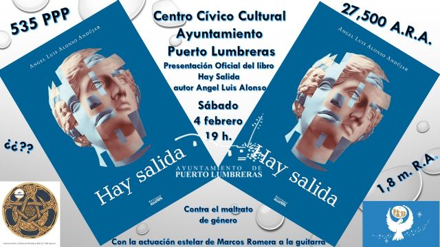 El edil ha manifestado que "este sábado, 4 de febrero, Puerto Lumbreras volverá a acoger la presentación de un nuevo libro. En esta ocasión, en el salón de actos del Centro Cívico Cultural conoceremos el trabajo de Ángel Luis Alonso que nos dará a conocer 'Hay salida'".