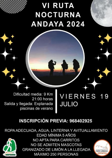 La alcaldesa ha recordado que "la VI Travesía Nocturna 'Andaya' cuenta con un aforo máximo de 250 plazas y, para participar, es necesario realizar inscripción previa a través del teléfono: 968 40 29 25".