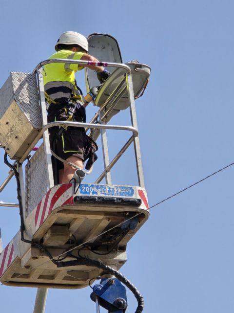 La alcaldesa ha especificado que "estos trabajos de renovación han comenzado en la avenida principal de El Esparragal y continúan en la calle Orfeón Fernández Caballero. Se va a proceder a la sustitución de las luminarias en la Avenida Rey Juan Carlos I, desde la rotonda de la Independencia hasta la Oficina de Turismo y en la Avenida Astudillo hasta la rotonda de la Carretera de Águilas".