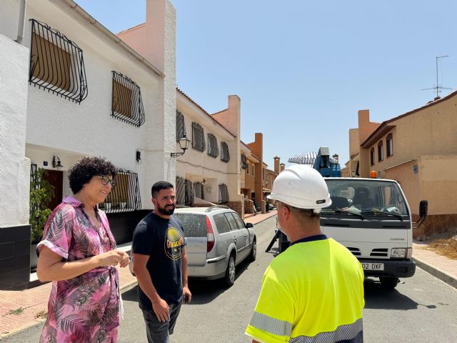 La alcaldesa de Puerto Lumbreras, María de los Ángeles Túnez, y el concejal de Obras Públicas, Juan Rubén Burrueco, han supervisados los trabajos de renovación del alumbrado público en los barrios de Valdelagrana y Casa del Cura.