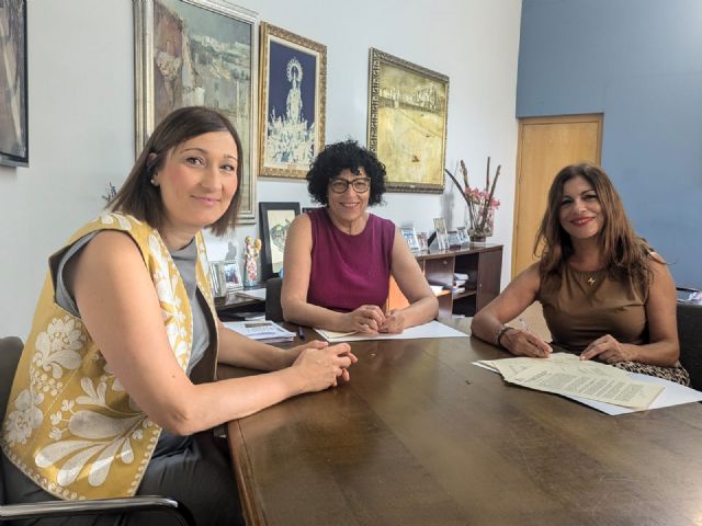 La alcaldesa de Puerto Lumbreras, María de los Ángeles Túnez, junto a la concejal de Cultura, Toñi Navarro, ha rubricado el convenio de colaboración con la presidenta de la Asociación Riá Pitá, María del Carmen Martínez.
