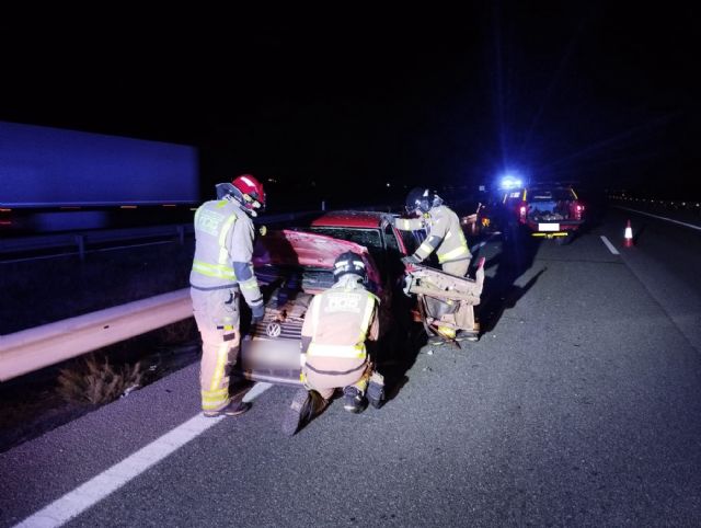 Al lugar del accidente se han movilizado efectivos de Guardia Civil, bomberos del Consorcio de Extinción de Incendios y Salvamento de la Región de Murcia (CEIS), que han procedido a excarcelar al conductor ´kamikaze´ que se encontraba atrapado en el interior del vehículo, así como una ambulancia no asistencial de la Gerencia de Urgencias y Emergencias Sanitarias 061, que ha procedido a trasladar al único herido, un varón de 70 años, hasta el Hospital Rafael Mendez de Lorca.