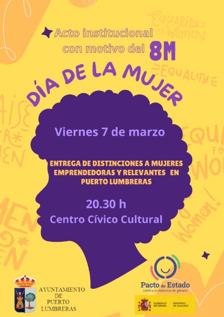 "Este año, el reconocimiento 'Mujer relevante de Puerto Lumbreras' ha recaído sobre la bailaora Noemí Ayala y los premios 'Mujer emprendedora 2025' en las empresarias Rocío Ayala, Carmen Giménez, Diana Cristina Henao y Verónica Jódar. Todas ellas serán galardonadas con un premio municipal que reconoce el emprendedurismo y la relevancia de las mujeres en Puerto Lumbreras".
