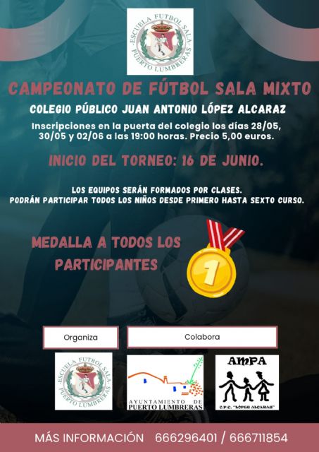 López ha explicado que "la Escuela de Fútbol Sala de Puerto Lumbreras, en colaboración con el Ayuntamiento y el AMPA del Colegio Juan Antonio López Alcaraz, organiza el Campeonato de Fútbol Sala Mixto del Colegio Juan Antonio López Alcaraz".